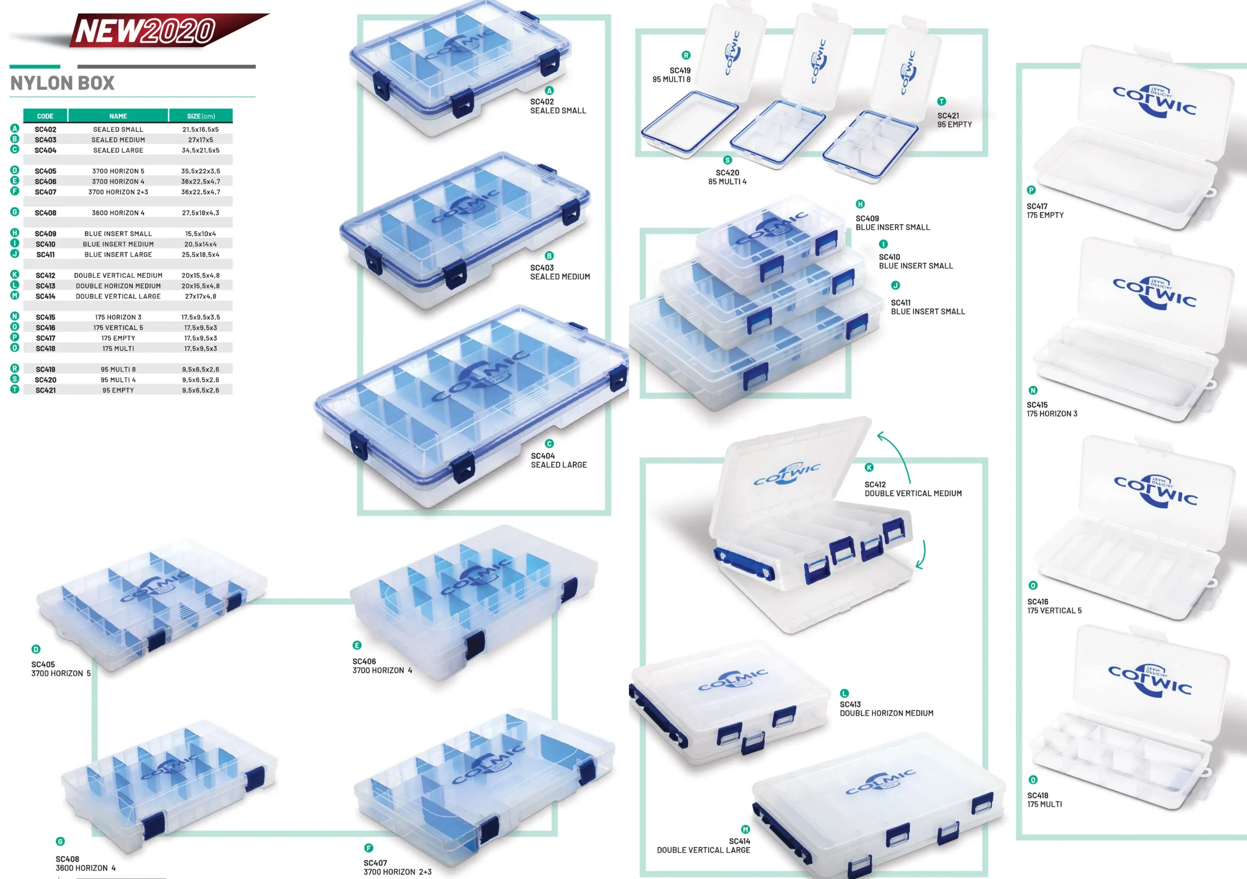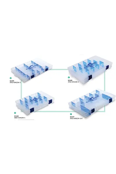 Кутии за примамки и аксесоари с различни конфигурации и размери.