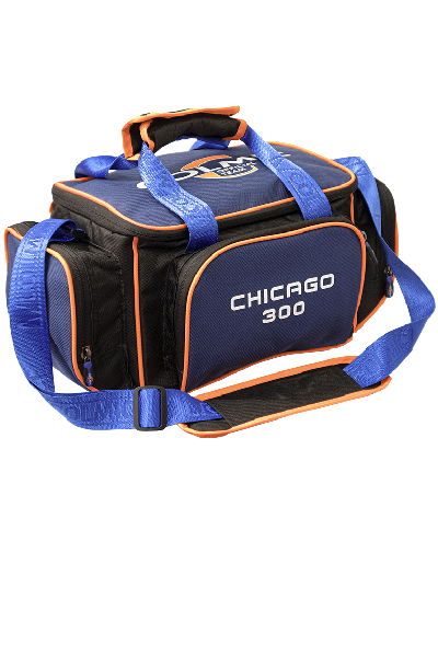 Удобна чанта за риболов с множество отделения и ремък за носене през рамо.