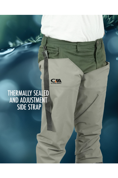 Благодарение на регулируемите странични презрамки със системата за закрепване на колана, те винаги остават добре прилепнали към тялото, като предотвратяват подхлъзване или дискомфорт по време на ходене или риболов.